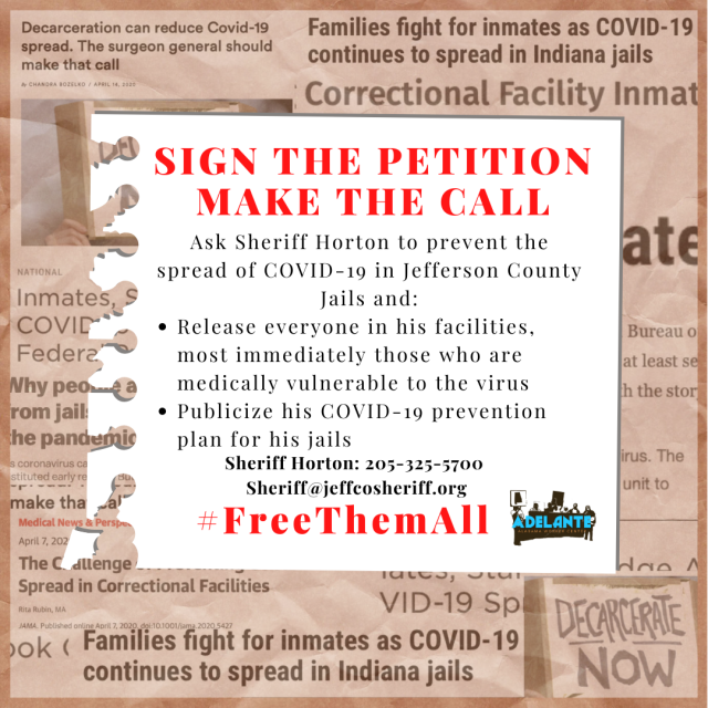 - Press Release: Jefferson County Sheriff Refuses to Release COVID-19 Plan for Jails, Advocates Respond with #FreeThemAll Campaign (April 15, 2020)